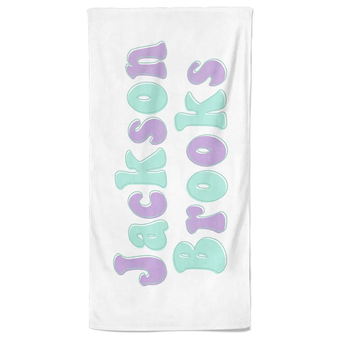 NEW EXTRA PLUSH TOWELS! Who wants a basic beach towel when you can get one with your baby's very own name on it? Grab one of these towels that are a buttery soft velure on the printed side and plush white terry on the back side. Your little one will love using this towel to dry off getting in and out of the pool, and will want to stay wrapped up in it during all the snack times in between.