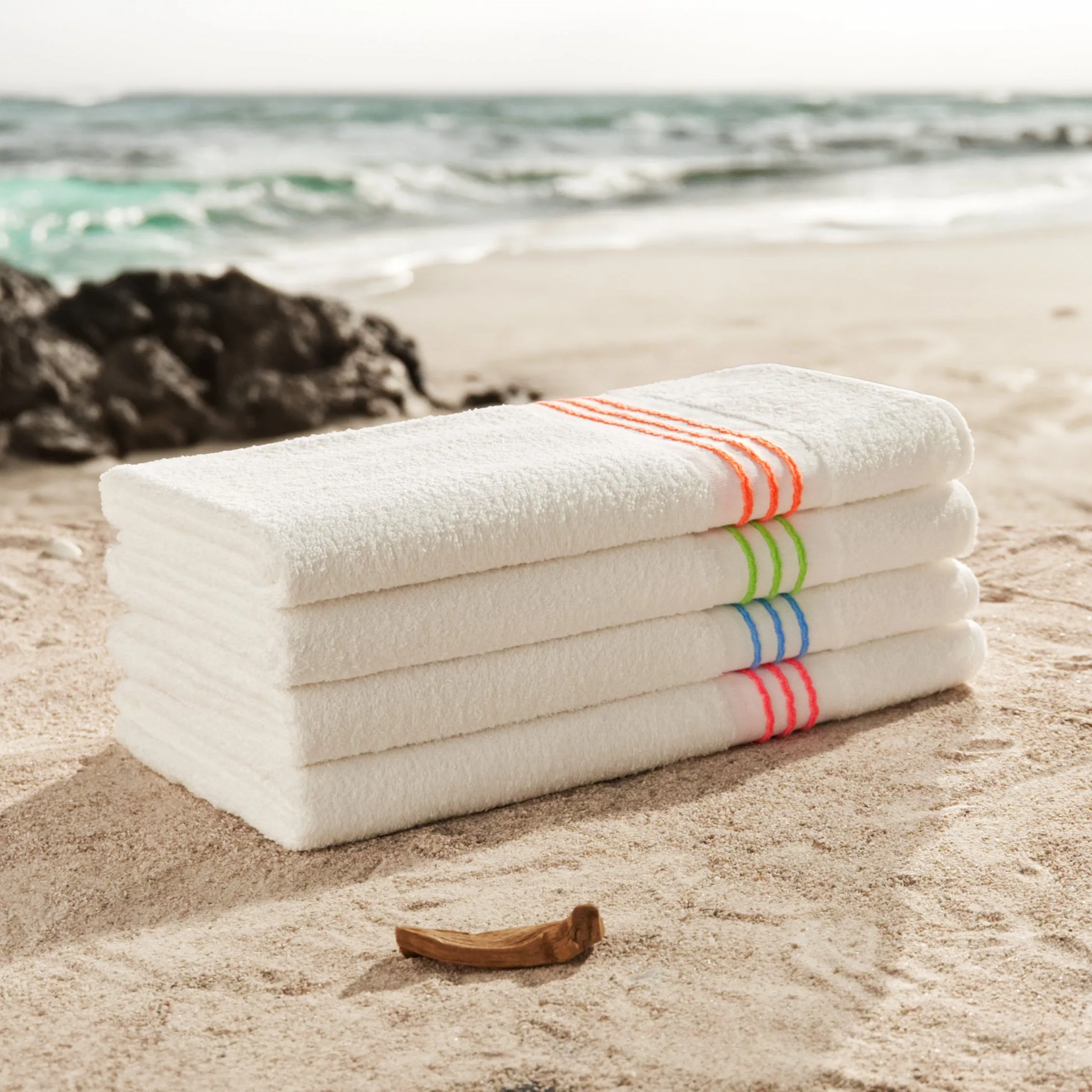 Product Description:Indulge in luxurious comfort with our extra plush best pool towel, adorned with vibrant neon stripes in cheerful shades of blue, orange, green, yellow, or pink along its borders. This resort-style beach towel is the ultimate summer companion, designed for your beach and poolside adventures. Crafted from 100% cotton, it offers a soft and cozy touch, while its durable construction ensures long-lasting quality. And when it's time for cleaning, simply toss it in the washing machine for easy care.