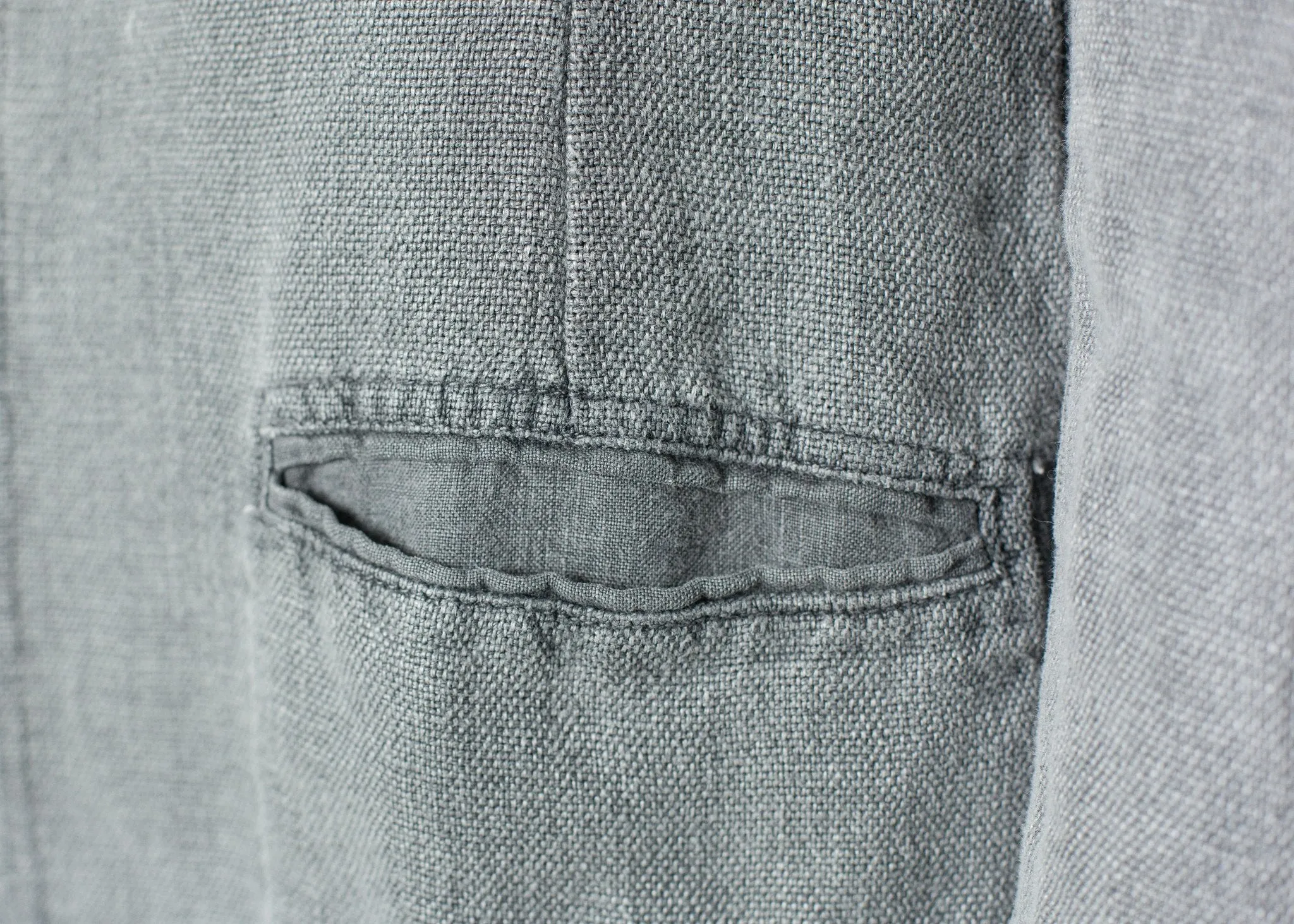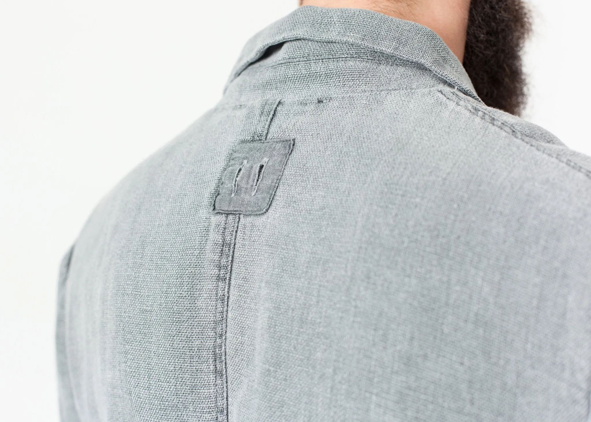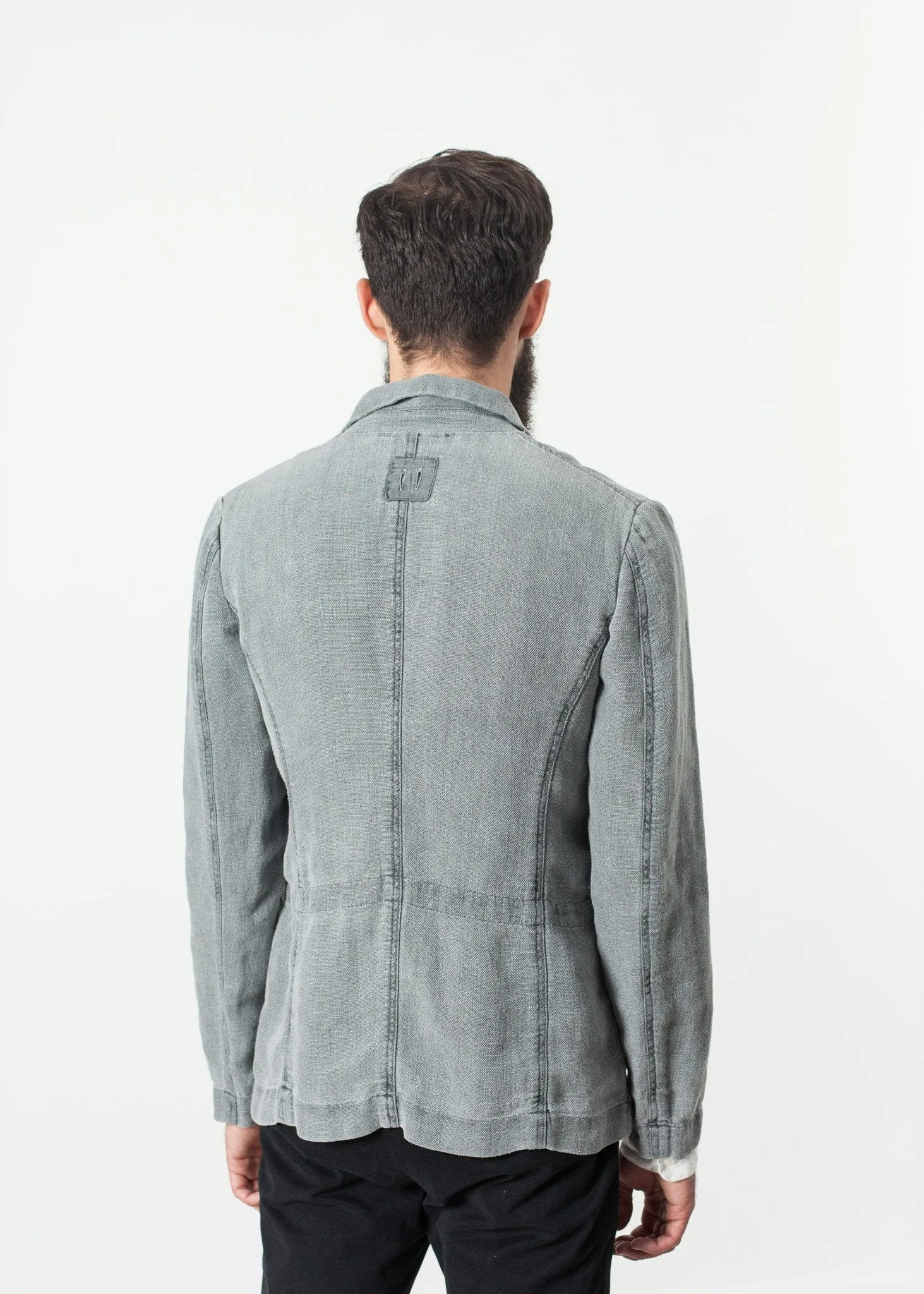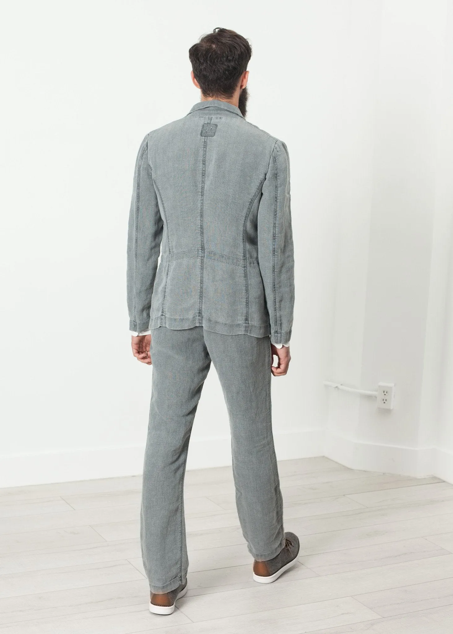 Understated yet classic, Hannes Roether’s pieces offer versatility through timeless silhouette. Woven jacket with yoke detail. Accent lapels. Hidden interior breast pocket. Color Tar. 100% Linen. Made in Czech Republic. Addis is wearing a size Small. Addis is 6’2”, Chest 38.5”, Waist 31”, Inseam 32”.